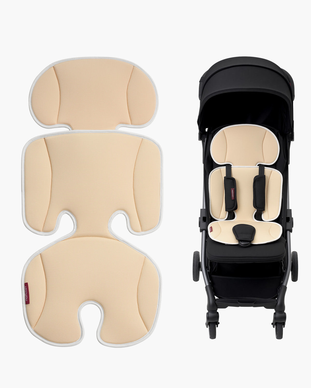 This universal fit stroller cooling pad insert really does fit a variety of stroller seats because it works in our compact, trifold stroller and our full size travel system. I like that the top head section is removable which makes the insert look a little more sleek and less seen in the seat. The material is a very nice quality, thick and durable and perfectly padded to be comfortable without feeling bulky to sit on. This is also great for not taking up too much room whether it is in the stroller seat or being stored. The unique shape of the seat edges make it conveniently easy to slip in and out and around the straps of the harness and buckles. This is very reasonably priced and a great addition to your stroller. It functions to help keep cool but also works as a liner that makes it easy to remove and keep your stroller clean!