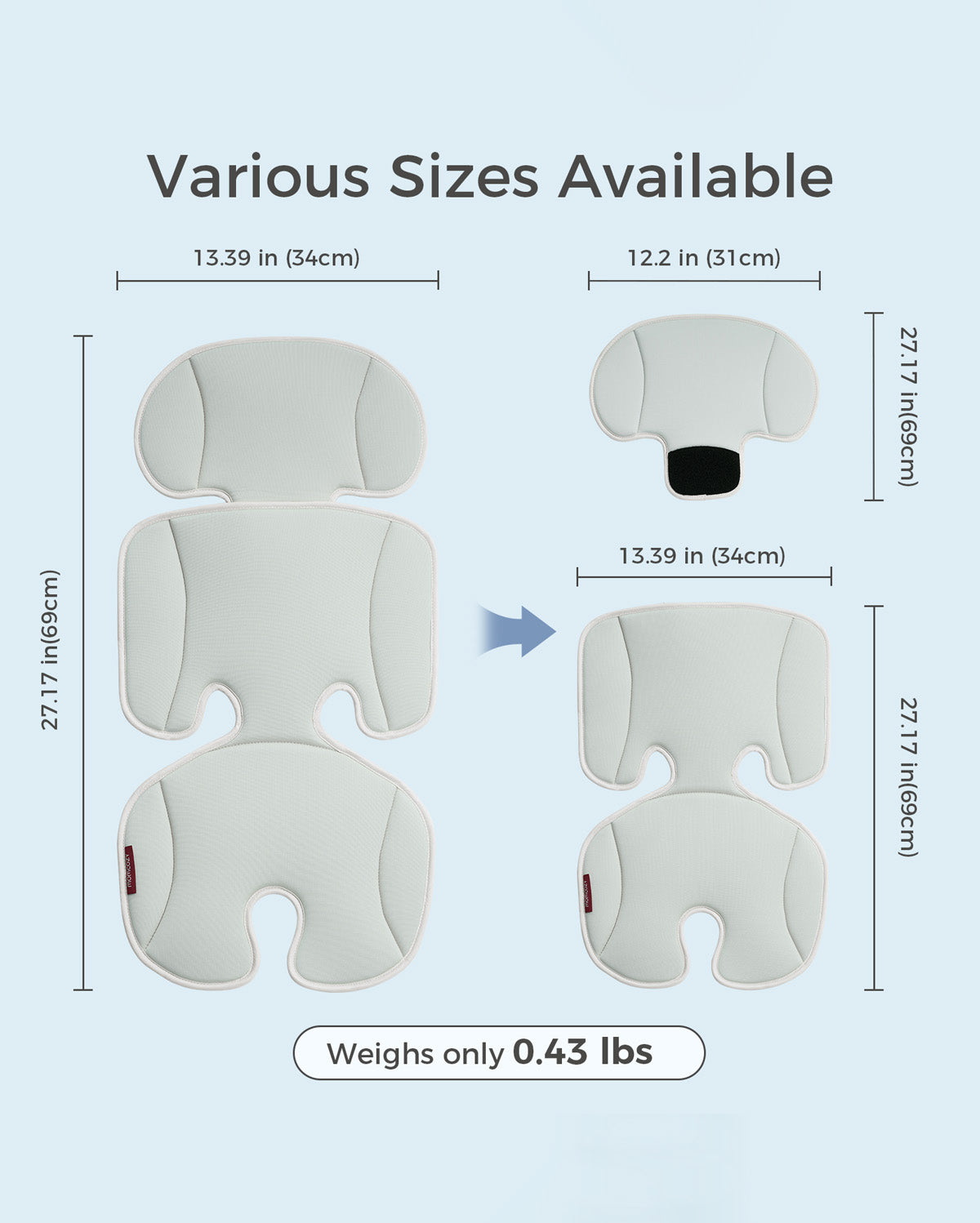 Featuring a detachable design, this cooling pad can be separated into two sections, allowing you to customize the size based on your baby’s age and stroller type.